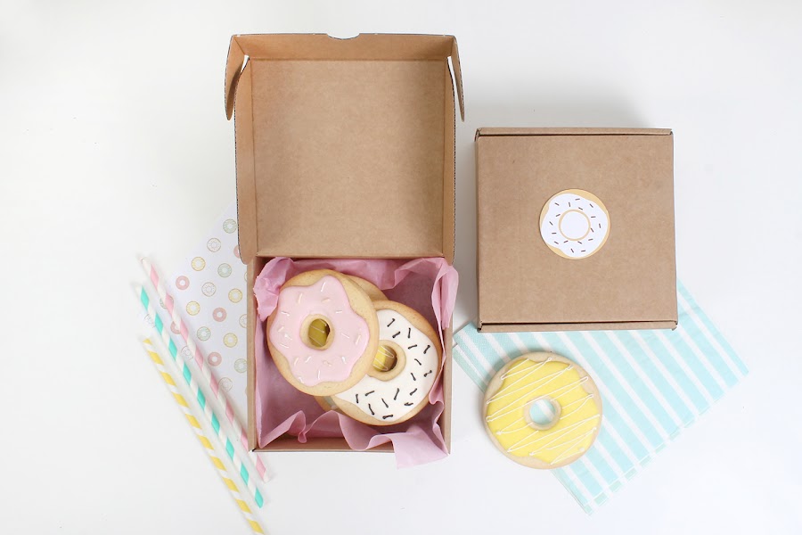 Las cajitas de Selfpackaging, personalizadas con los toppers, eran ideales para llevarse a casa donuts o galletas, aunque en este caso, no sobró nada ;)