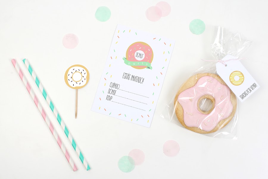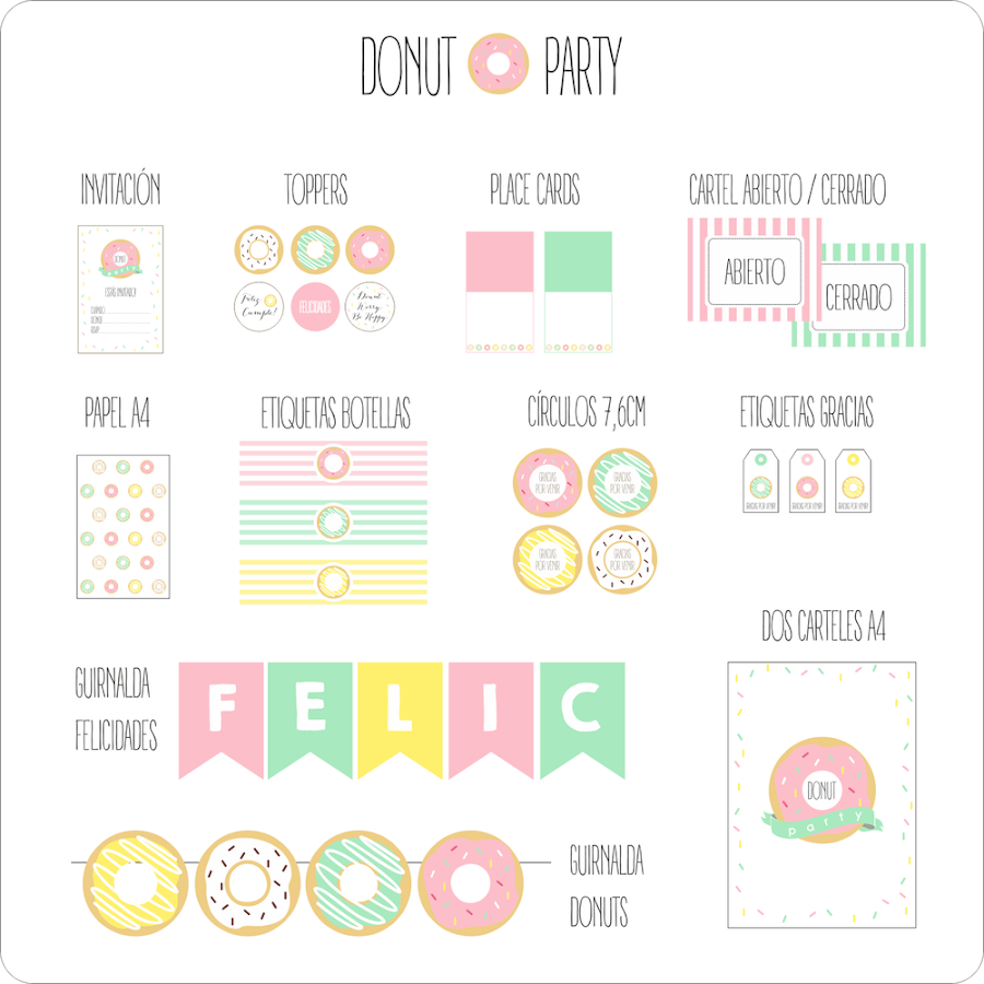 El pack imprimible Donuts personalizado podéis comprarlo en la tienda, y con el código DONUTS os hacemos un descuento del 25%.