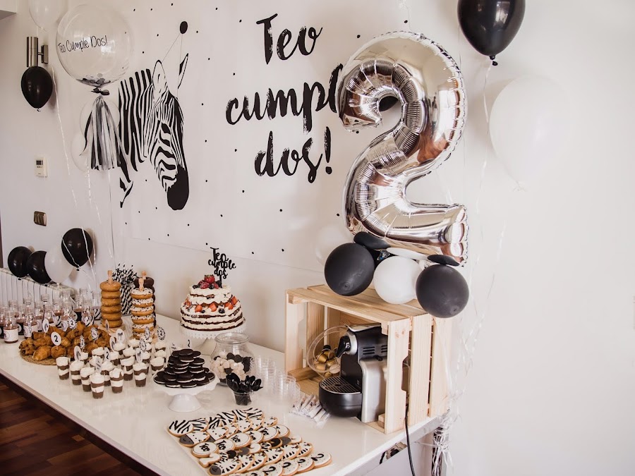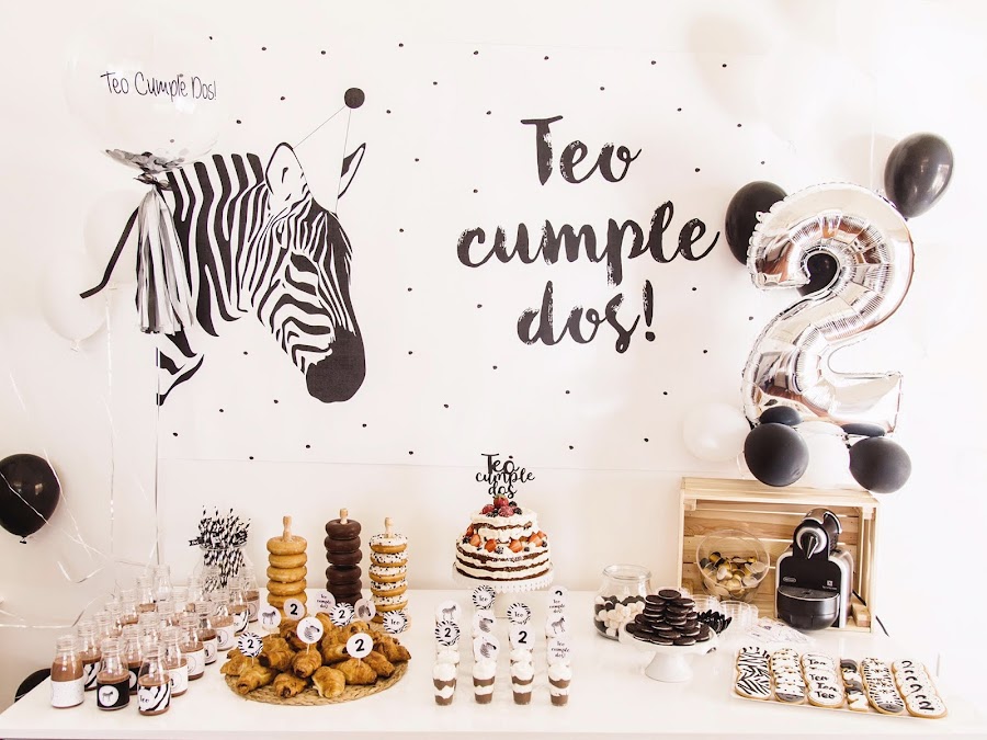 Su mami Noelia repite este año con nosotros, y nos pidió una fiesta moderna, en blanco y negro con temática Zebra.
