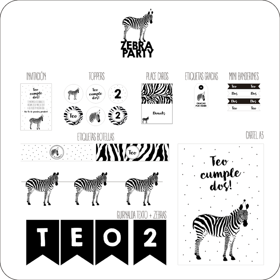 Podéis encargar vuestra fiesta imprimible Zebra en la tienda, haciendo click aquí. Hasta mañana TODAS las fiestas imprimibles tienen un 20% de descuento, utilizando el código PARTY20.