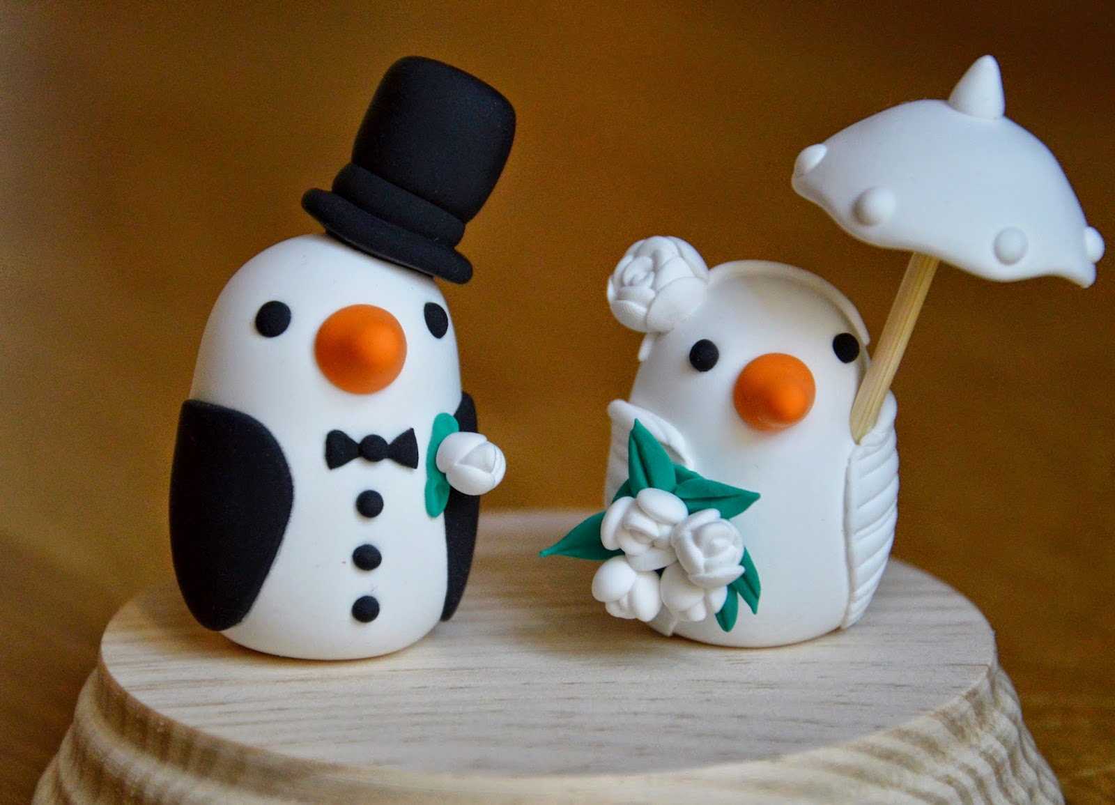 También puedes comprar parejas de pájaros personalizados para bodas sobre peana redonda de madera de pino (diámetro en base de 9cm.). Su altura es de 6cm. más la peana de 2cm.