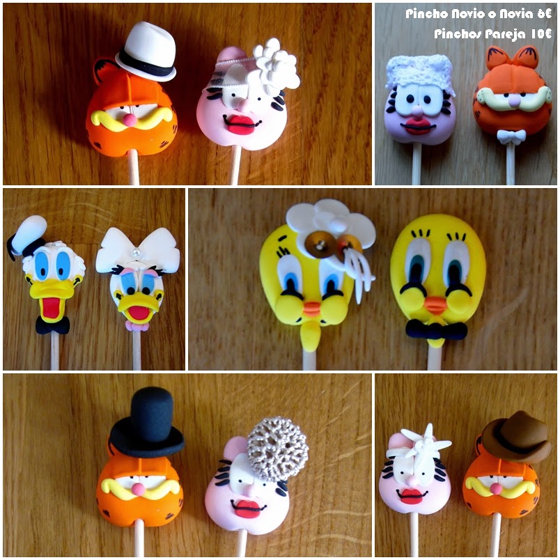 Corona la tarta con estas parejas de novios de tus dibujos animados favoritos (Garfield, Pato Donald, Piolín,..).