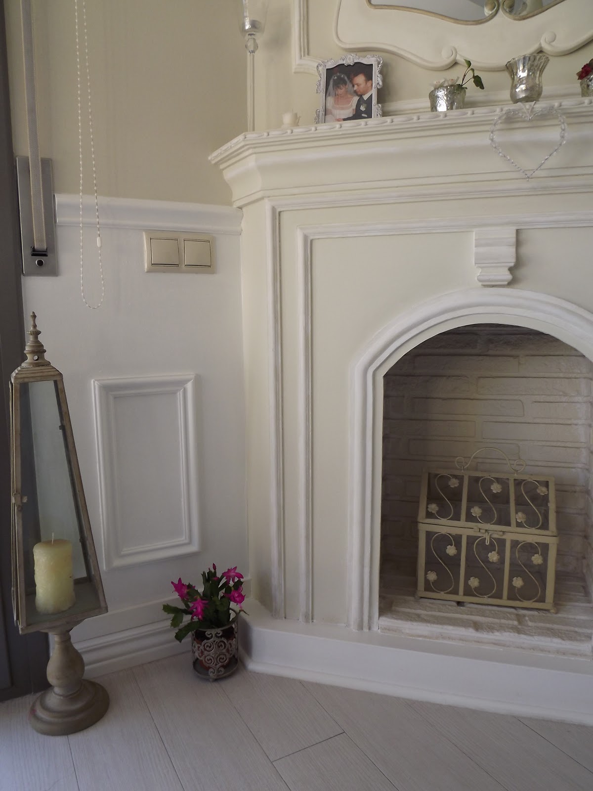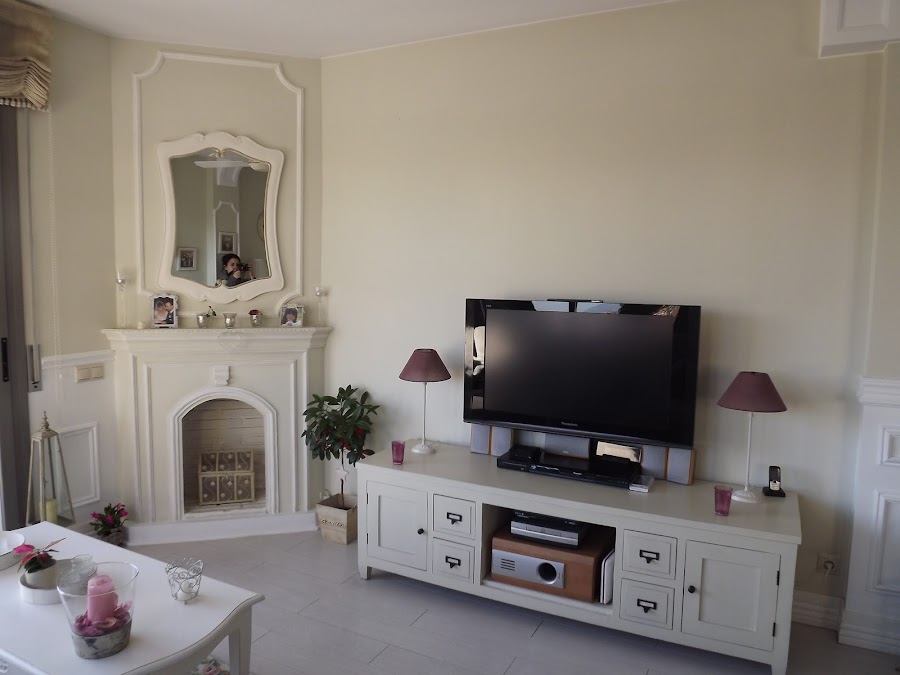 El fin de semana ha dado para mucho...Y mi marido no ha parado...hemos puesto molduras al lado de la chimenea,ahora queda mucho mejor,era como si algo le faltara. La pared de al lado donde tenemos el televisor irá empapelada para darle un nota de color...el pápel lo compramos el sábado pero aún nos tiene que llegar...tiene un estilo algo atrevido,espero que quede bien,nos costó decidirnos con tantos como había,pero finalmente nos decantamos por uno en tonos grises que cambia de tonalidad según la luz,mi marido dice que es precioso...Ya me muero por colocarlo...¡Se me olvidava!,tambien hemos empezado la reforma en la cocina,pero eso ya os lo contare mañana...Feliz inicio de semana.