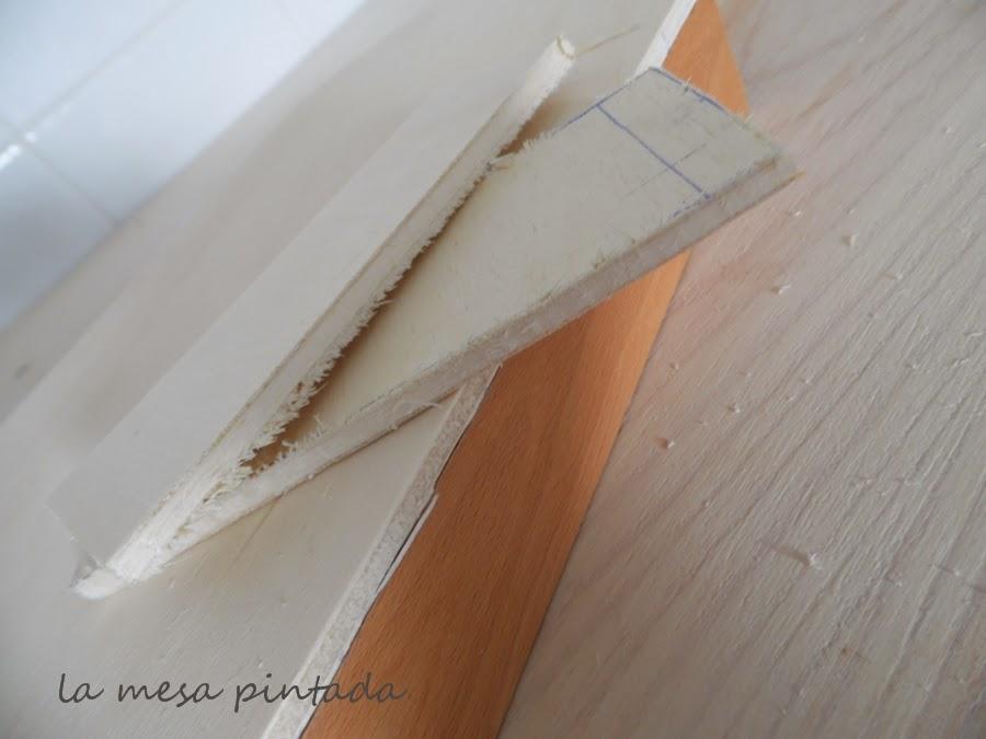 Corté dos tablitas para darle la forma al tejado