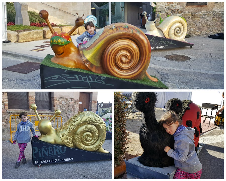 Este año, como novedad, había unas esculturas de caracoles chulísimos!!! A las 11 de la mañana estaba ya lleno de gente comiendo caracoles. Diferentes restaurantes ofrecen tapas de caracoles a degustar, la gente vota su tapa preferida y escogen el ganador.