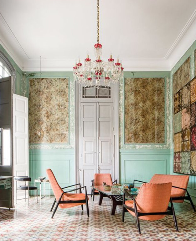 Sin embargo hoy, he visto un sillón de este color en un escaparaté y literalmente he tenido un flechazo sillonil. Acto seguido he pensado en la cantidad de toques melocotón que alegrarían muy mucho cocinas, salones y dormitorios la mar de aburridos con los que me topo a menudo, y he pensado que muchas de mis amigas obsesionadas con el rollo nórdico (que ya sabéis los bostezos que me provoca…) podrían salvar sus salones con unas sillas o un butacón súper potentes en color melocotón.