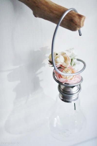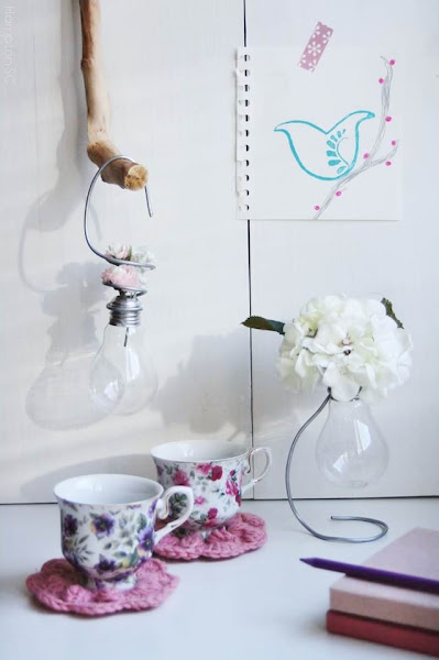 Ya sólo queda enroscar la bombilla en el soporte y poner unas flores.