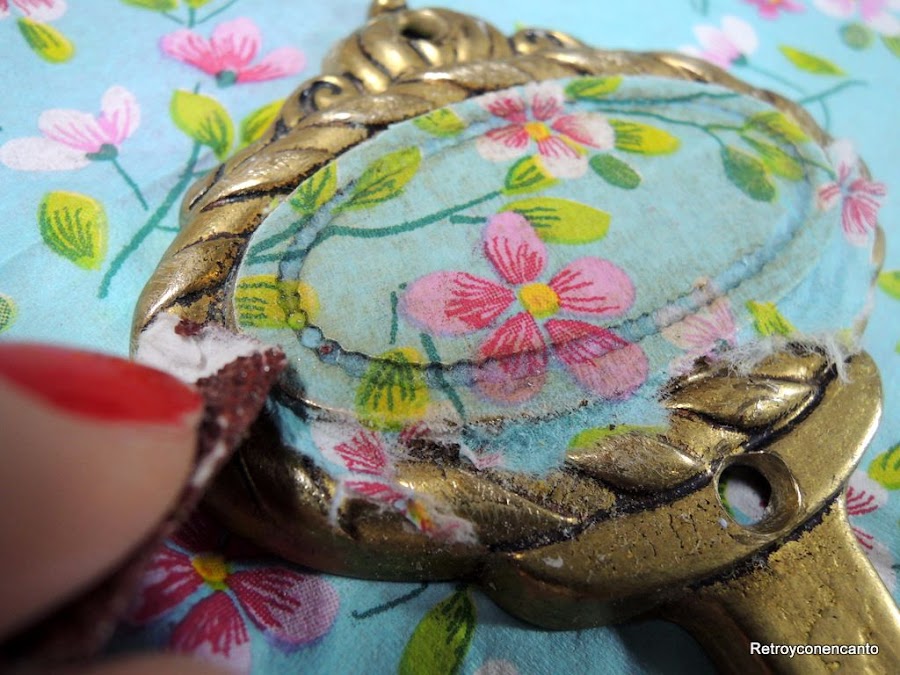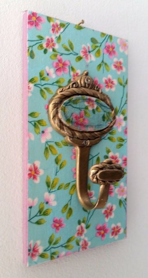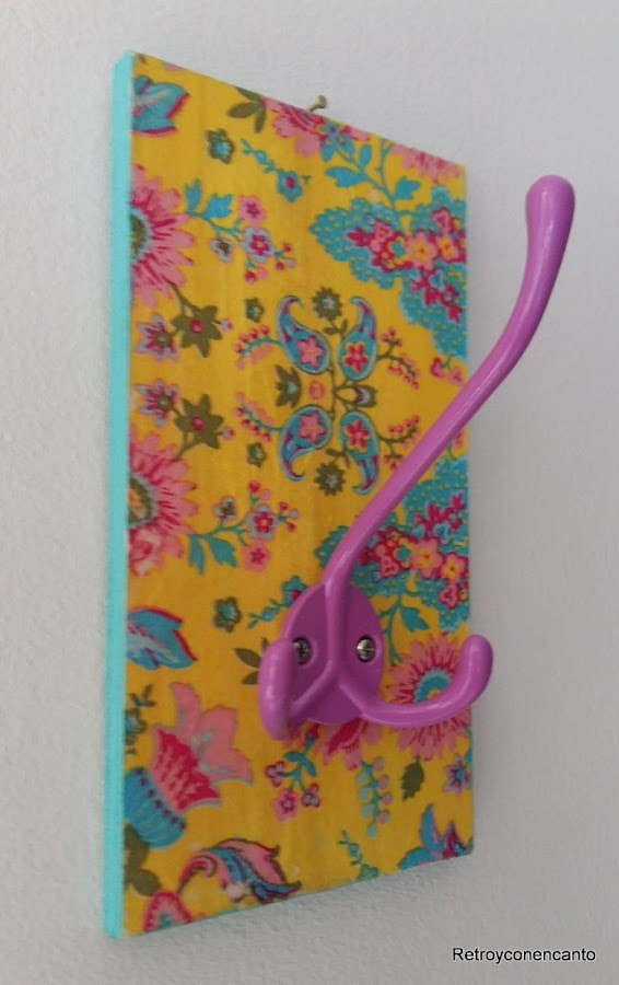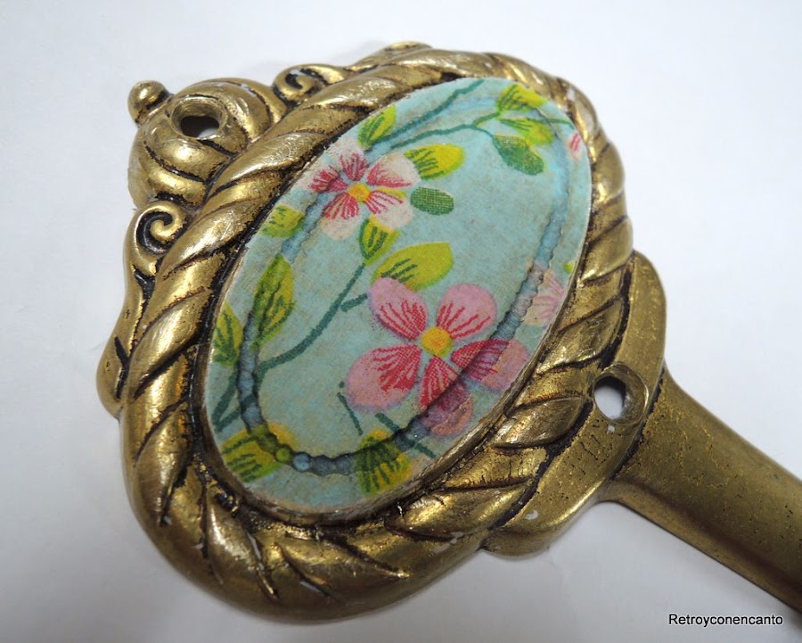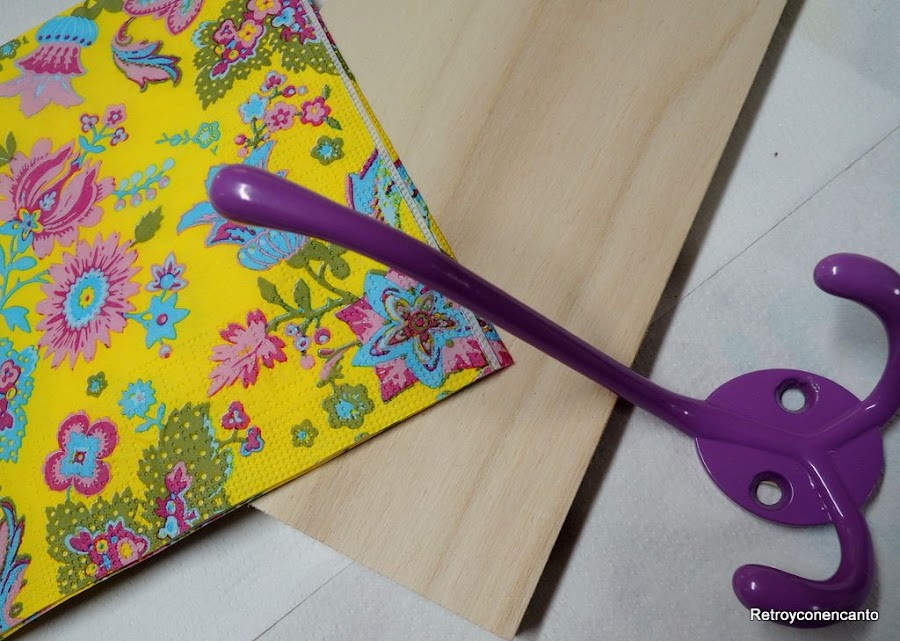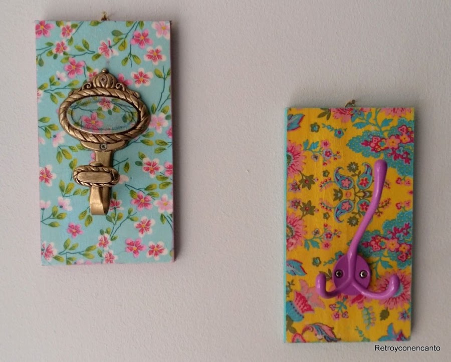Decoupage, tanto en la madera como en uno de los percheros, para resaltar la parte central del mismo...