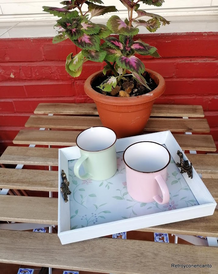 Finalmente, decidimos que el uso que queríamos dar a nuestro trabajo era el de pequeña bandeja de desayuno, así que retiramos el pie de apoyo trasero que permitía mantener el cuadrito en vertical. De esta forma dimos asentamiento a nuestra nueva fuente o batea.