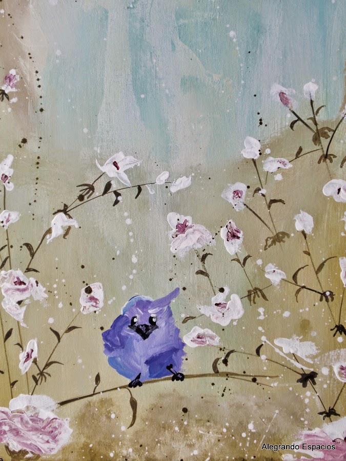 Flores y pájaros con estilo shabby. Acrílicos sobre Lienzos de 30 x 40