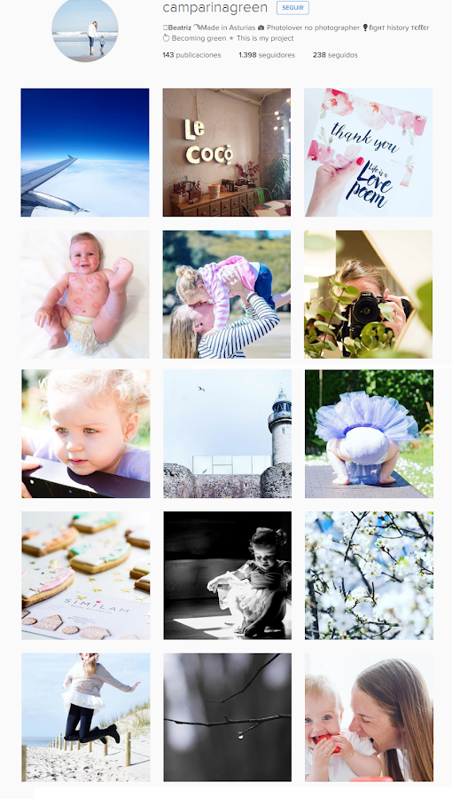 Pues bien, este mes, te presentamos a @camparinagreen. Nosotras, la conocimos por una de esas recomendaciones semanales que se pusieron de moda una temporada, y en la que está inspirada esta sección, el follow-friday. Nos la descubrió @mvillacampabueno, y nos enamoramos de su galería, y de su niña, que como sabes, es una de las grandes protagonistas. La hemos podido conocer personalmente en el #cdbmeetsbilbao (del que os hablaremos en breve en el blog) y nos encanta!