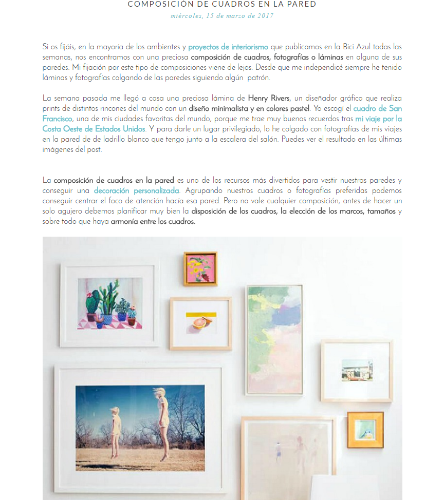 Un blog: De hecho, lo llamaría EL blog. Mi favorito de los últimos tiempos, por su originalidad. Maria Eugenia o Chejo, es la que está detrás de La Bici Azul. Sus descubrimientos nunca nos dejan indiferente, y si no eres muy de blogs, te recomiendo que la sigas por Facebook, donde puedes descubrir todo lo que recomienda de manera mas visual. DIY, tendencias, y mucha mucha decoración es lo que te vas a encontrar en casa de Chejo.