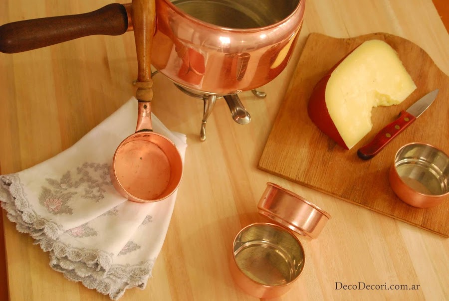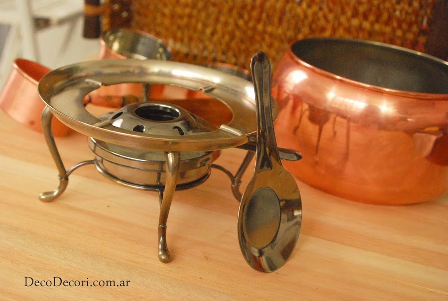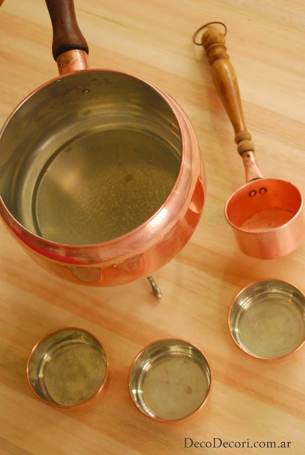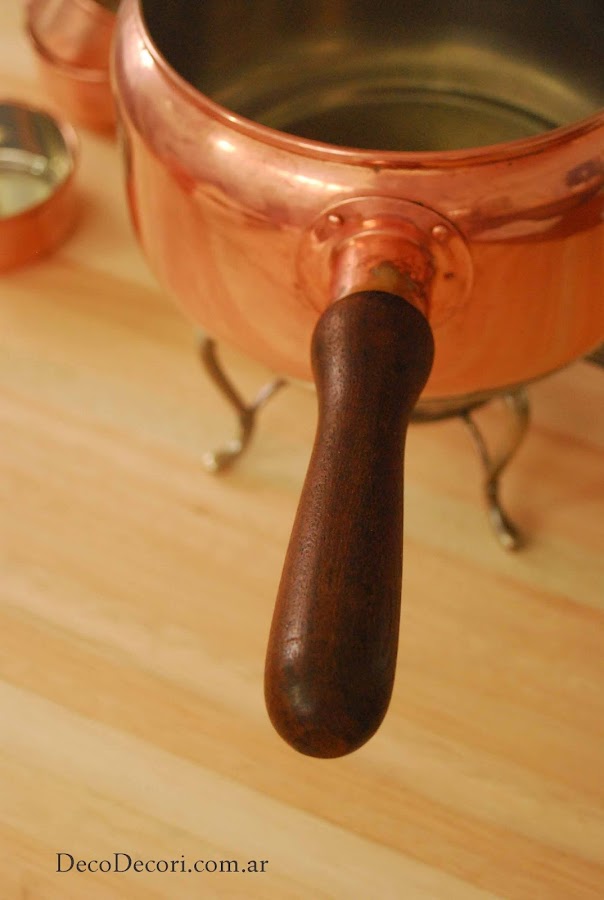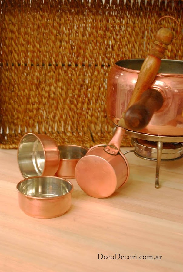Son en acero inoxidable por dentro y cobre en el exterior, 3 pequeñas cazuelas para colocar algunos de los ingredientes.