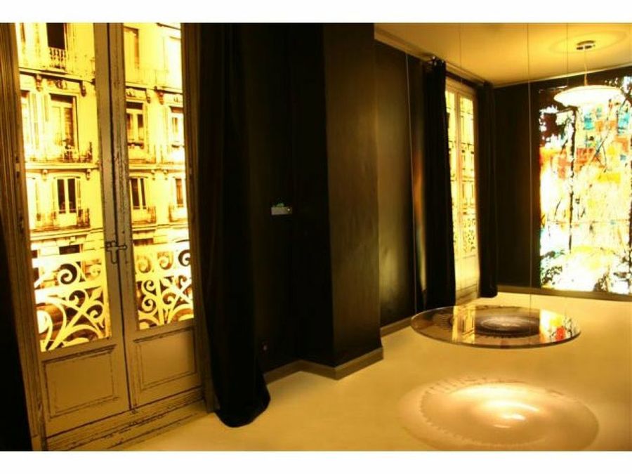 Sorpréndete con estas tres soluciones. Una escalera circular sobre una plancha de metacrilato de 2 cm. de grosor podría convertirse en tu próxima mesa de centro. Si a tu casa le falta luz natural, ésta puede entrar de forma artificial a través de una falsa ventana retocada digitalmente cuyo interior es de metacrilato opal. Por último, estas cortinas de organza con estampados digitales descubren detrás de sus motivos arquitectónicos unos lienzos en bastidor.