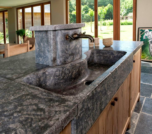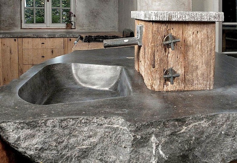 Auténticos trabajos de artesanía realizados en piedra natural, estos fregaderos rústicos son absolutamente únicos en su clase, sin normas ni límites. No responden a estrictas medidas o modulaciones, sino a la inspiración basada en las características del propio material y solo respetando unos básicos requerimientos de la cocina donde van a ser instalados.