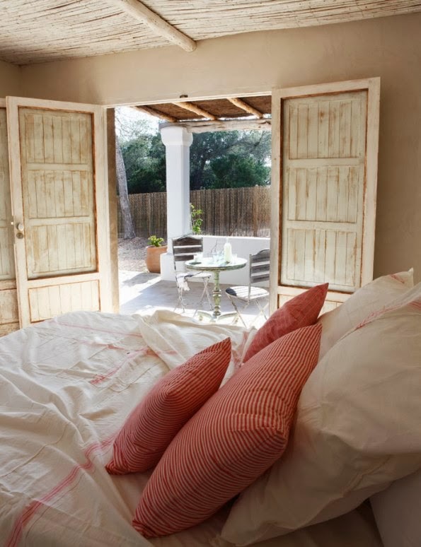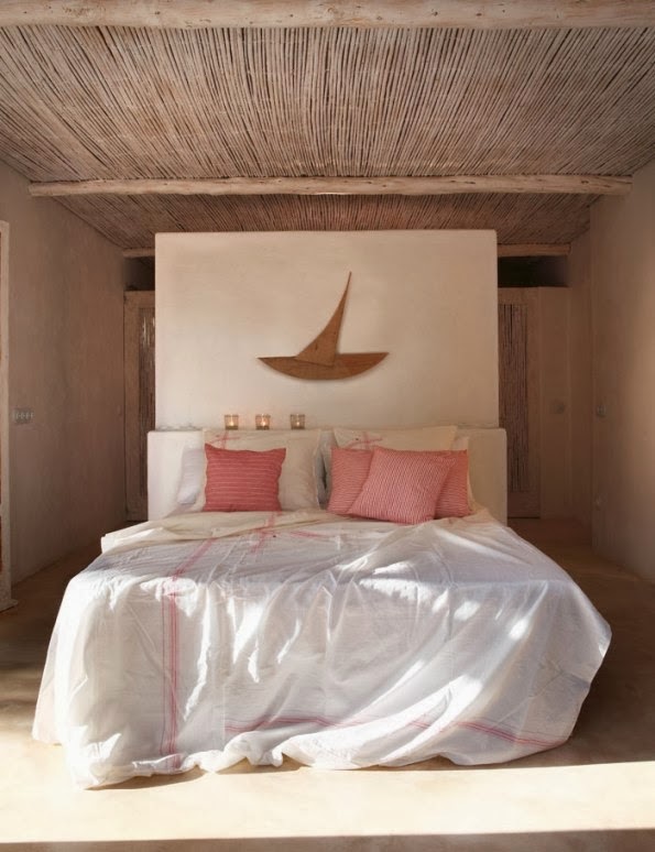 En las casas de esta isla así como las de otros puntos del mediterráneo, se juega mucho con la edificación haciendo que forme parte de la decoración. Es una de las cosas que más me gusta de estas viviendas además de la utilización de materiales como la madera, con el que consiguen ese toque más cálido en la decoración de los interiores despejados de muebles y encalados.