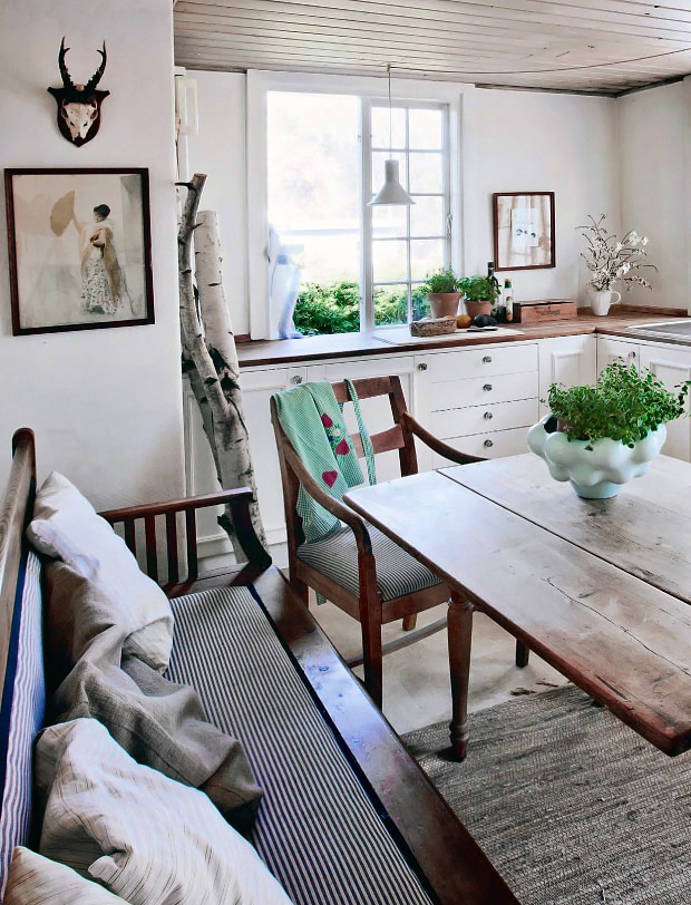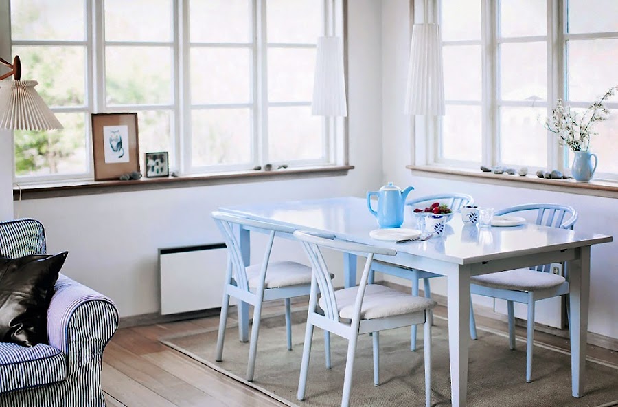 Hoy os quiero enseñar un pequeño loft de dos plantas, con un estilo sencillo y romántico, en el que la madera y el color blanco son rotos por pinceladas en diferentes tonalidades de azul. Me encanta la zona de comedor, con la pared de ladrillo como protagonista, la mezcla de sillas me parece todo un acierto, combinando diferentes estilos e incluyendo un banco, idea que me parece genial. Co ...