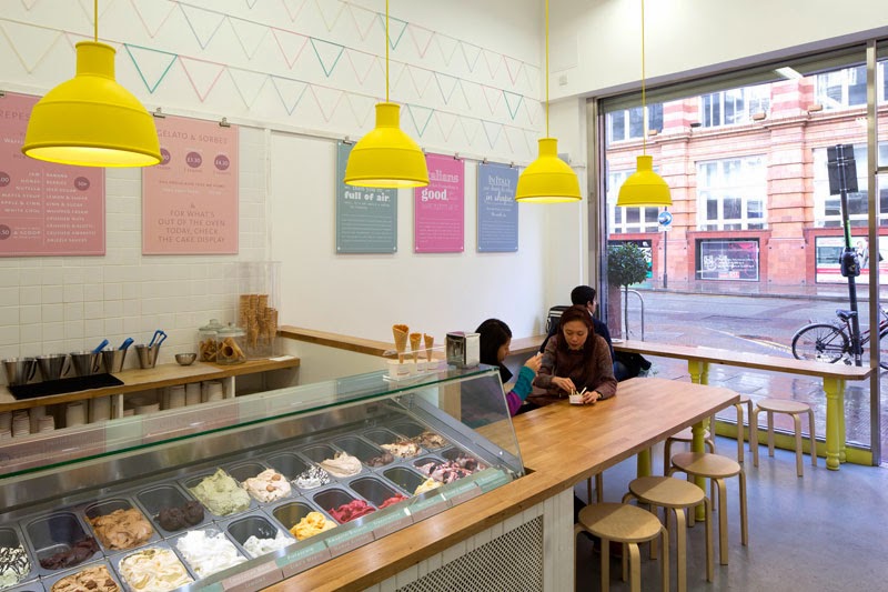 Me ha encantado el diseño de esta heladería, por su sencillez y resultado tan efectista. El estudio Lifeforms Design fue el encargado de llevar a cabo este proyecto, en el que el cliente, un diseñador gráfico, partía con un presupuesto ajustado y quería dar una gran importancia a la imagen de marca.