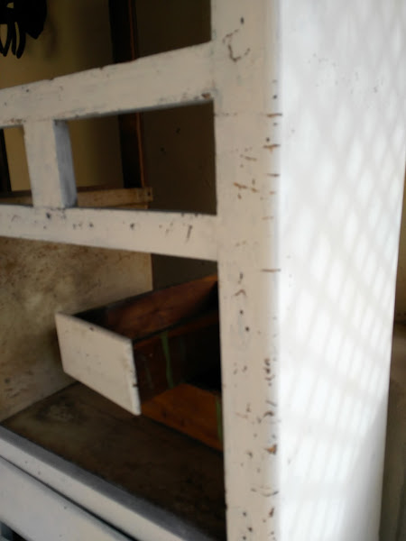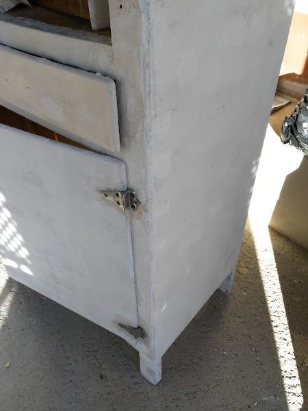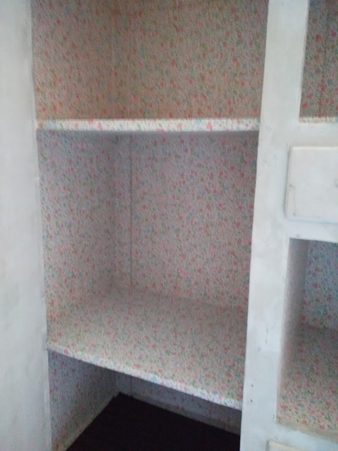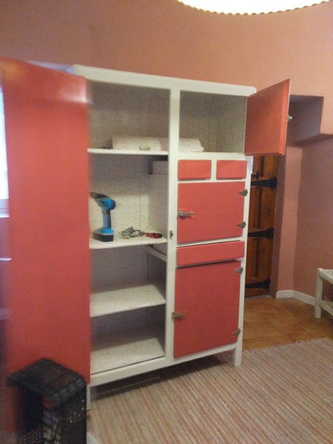 Fué necesasio quitar los paneles traseros y poner unos nuevos, hacer unas baldas y listones que estaban comidos por la polilla y reparar los cajones. De esto se encargó el manitas de mi marido. ¡ gracias por tu ayuda cariño !