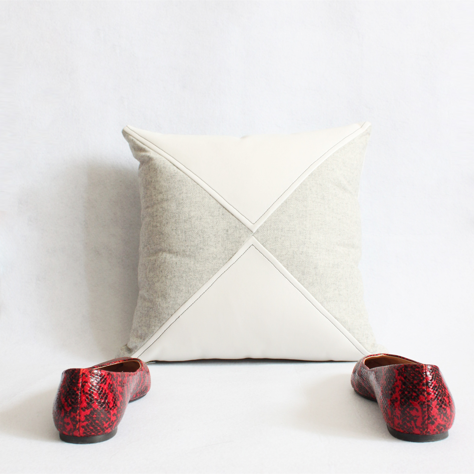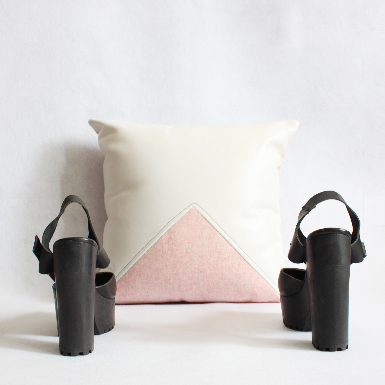 Partiendo de esto hemos mezclado materiales, polipiel y paño, jugando con las formas geométricas y creando piezas versátiles con multitud de opciones.
