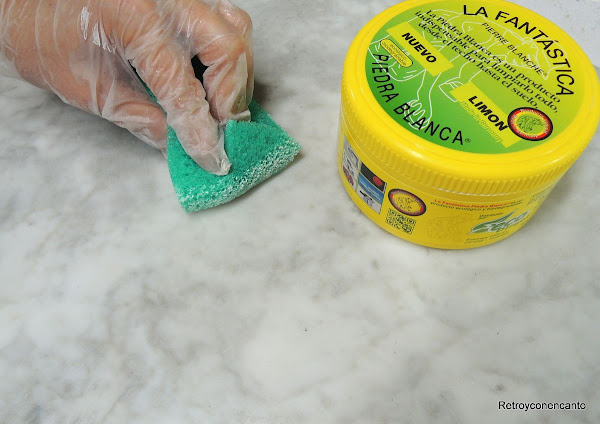 El mármol se encontraba en muy buen estado, pero bastante sucio. Nos decidimos a probar este producto adquirido en la Feria de las Naciones de nuestra ciudad. ¡Quedó perfecto!