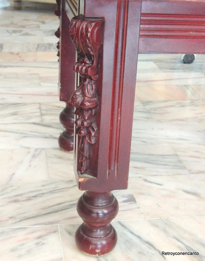 Si bien las esquinas de las patas estaban adornadas con unos apliques de un material que parecía plástico, el labrado del mismo nos pareció muy a propósito para destacar.
