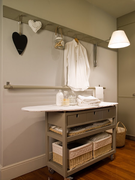 Al fondo, un perfecto lavadero de similar estética incluye lavadora, secadora y caldera, además de una cómoda zona de planchado.