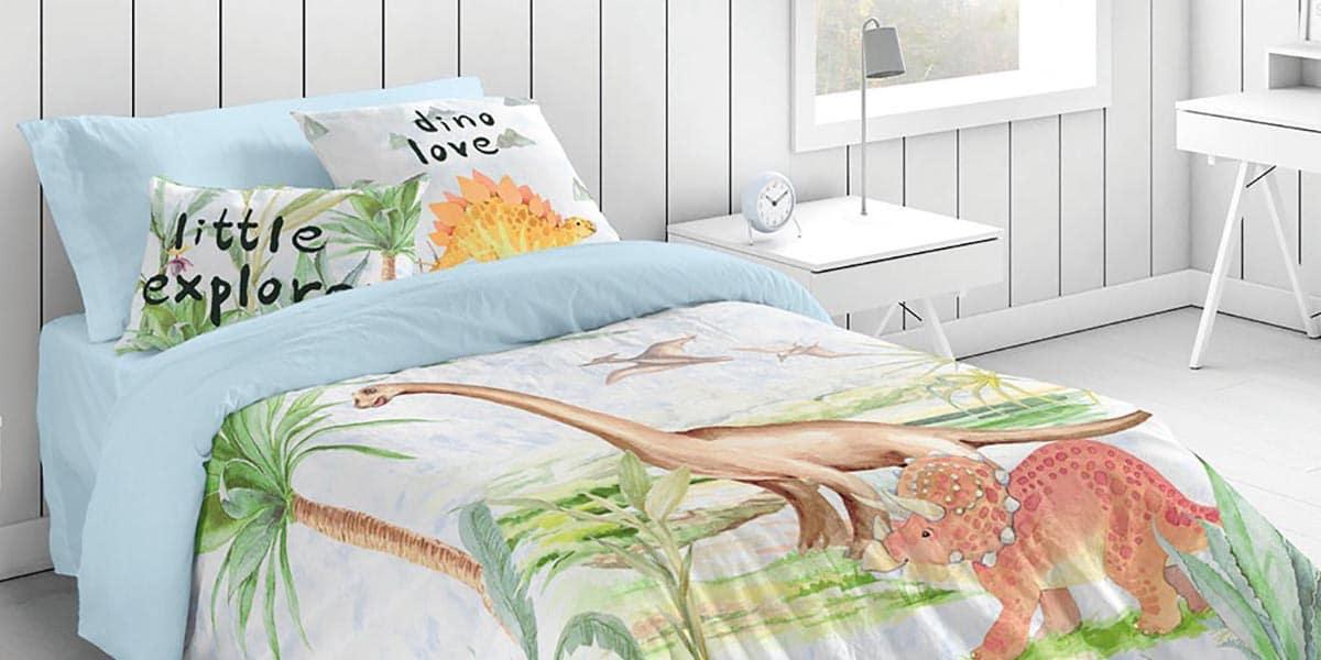 Los estampados de dinosaurios pueden llegar a ser toda una categoría, puesto que se trata de un motivo que gusta muchísimo a los más pequeños. Así que seguramente encontraremos una gran inspiración en estas fundas nórdicas con dinosaurios estampados. Es una ideal realmente divertida y sabemos que estos animales les gustan especialmente a los más pequeños, de ahí que sean tan habituales en las decoraciones infantiles.
