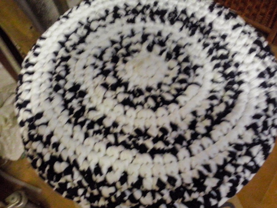 Otro finde frugal más y apurando el trabajo, para finalizarlo y no perderme otra colaboración, con lo que hoy mostaros únicamente estas dos funditas de trapillo, que he realizado para dos taburetes altos de barra (que prontito estarán también listos)
