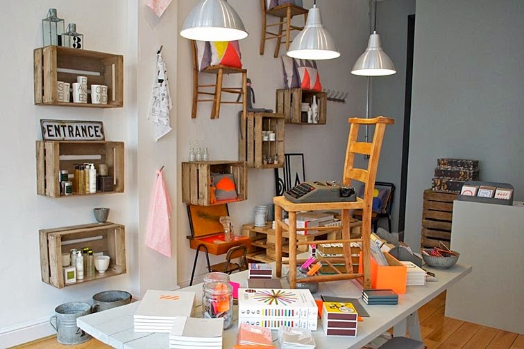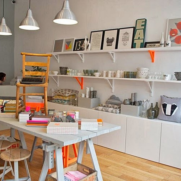 Artículos de todo el mundo, incluyendo delicadas cerámicas procedentes de África del Sur, elegante cristalería de la India, textiles del Reino Unido... Todo ello con materiales sencillos; vidrio, hormigón, madera y lana que combinan con textiles y papelería en colores flúor. No os encanta todo??
