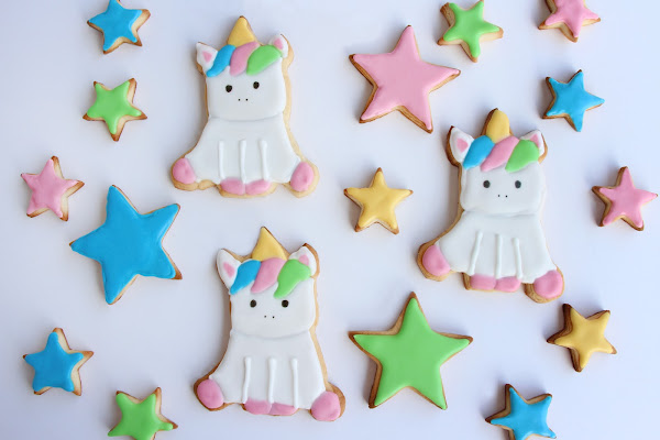 Como siempre, utilicé la infalible receta de galletas de mantequilla (tenéis la receta en este enlace) y para hacer la glasa utilicé esta receta.