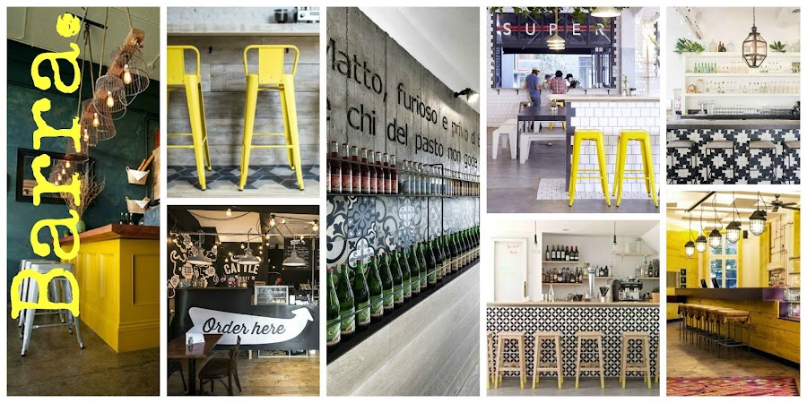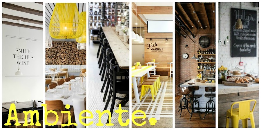 El "proyecto-que-no-fue" era la reforma de un restaurante tradicional de Laredo para convertirlo en un gastrobar en el que el ambiente, igual que la cocina, debía ser más fresco y desenfadado de lo que era hasta entonces. Las consignas fueron dos: debía ser una reforma asequible - tanto económica como formalmente - y los colores debían ser amarillo y gris, mezclados con la madera. Así que, para empezar a trabajar me monté un moodboard que sería mi inspiración a partir de entonces.