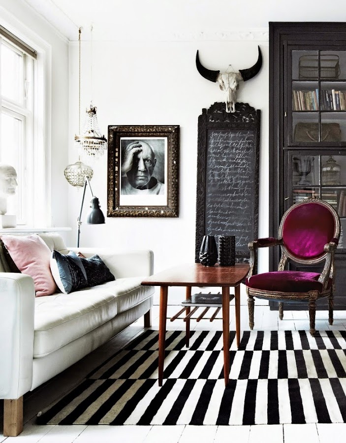 Siempre nos han dicho que el negro hace los espacios más pequños, que quita luz y que, además, es un color poco estimulante. Pero después de ver la propuesta de hoy, va a cambiar tu percepción de este color, elegante, sofisticado y con mucha personalidad, que con moderación y bien combinado con blanco, dorado y morado, puede crear un gran impacto y profundidad en tu decoración, lo que consigue sensación de mayor amplitud.