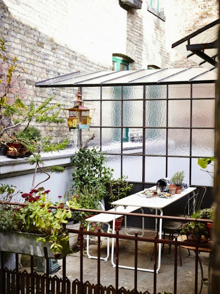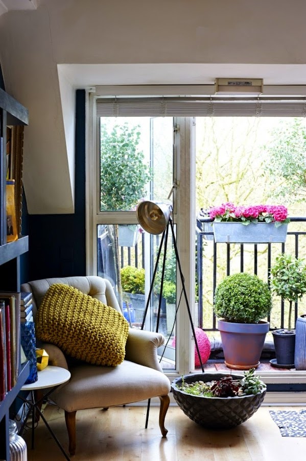 Después de ver esta imagen en Gardenista, nosotros que precisamente tenemos 4 pequeños balcones, me desanimé por la imposibilidad de conseguir este look que tanto me gustaba... Además este año nos arreglaron las fachadas del edificio, así que tuvimos que deshacer todas las enredaderas, donar muchas plantas que no podíamos tener dentro de casa durante las obras, otras murieron porque no les gustó el cambio de ubicación... Así que ahora tenemos 4 balcones tristes, medio vacios, esperando el buen tiempo para cambiar radicalmente y conseguir los balcones de nuestros sueños... Un poco de inspiración para pequeños jardines, a ver cómo decoraremos los nuestros: