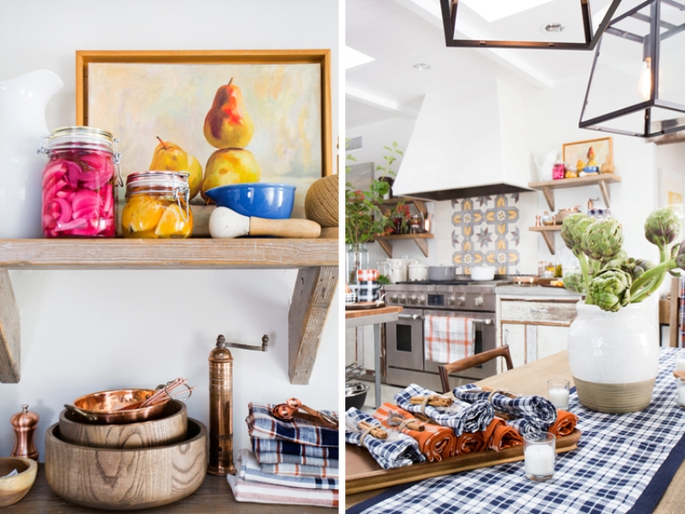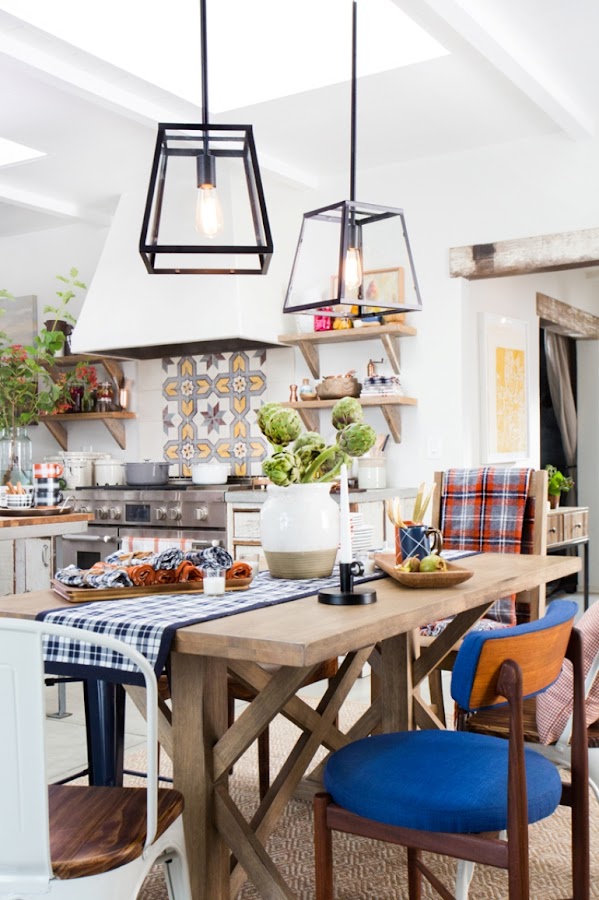 Empieza escogiendo una paleta de colores que combine con los elementos intocables de tu cocina. Maderas, cobres y rosas siempre son un acierto, pero puedes atreverte con naranjas, morados y mostaza, que nos trasladan sin duda a esta época del año. Después opta por estampados como los cuadros escoceses, que crean un ambiente cálido, suave, masculino y acogedor.