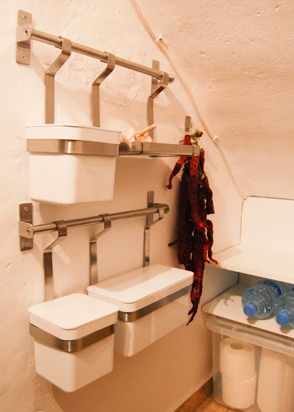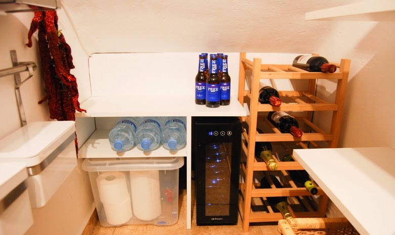Esta pequeña despensa, de escasos 2m cuadrados, tenía el añadido de la pendiente, que dificultaba el acceso a la parte del final. Lo primero fue pintarla en blanco: