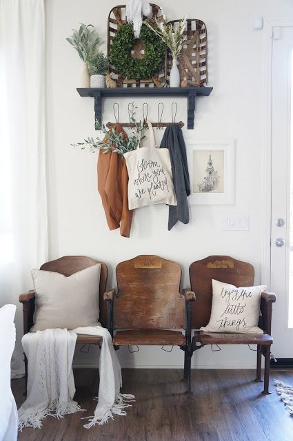 Un banco, banqueta, silla, butaca ... o cualquier asiento en general, nos ayudara a calzarnos y descalzarnos. Para los espacios pequeños, añadir un taburete o un puf, bajo la consola sera más que suficiente.