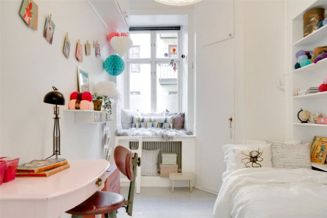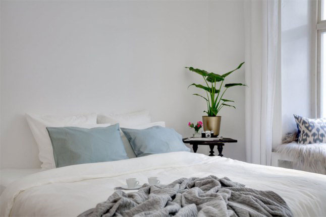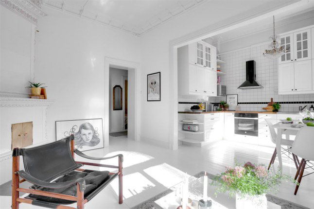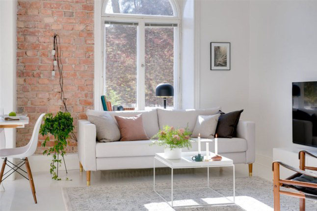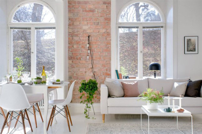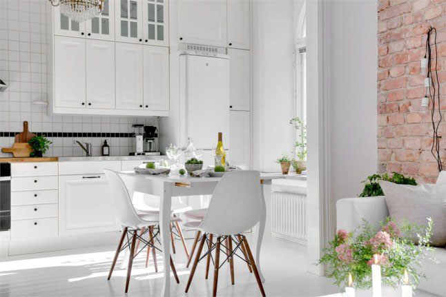 La verdad es que los propietarios de esta casa de 65m2 han sabido sacarle mucho partido a la pequeña pared de ladrillo vista, ya que por si sola ya decora y aporta un toque especial a la estancia. Por lo demás, como véis es todo blanco el cual todavía aporta mucha más sensación de claridad.