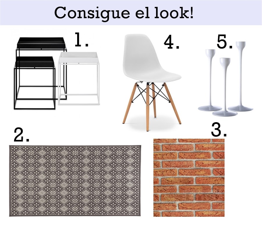 Por cierto os dejo unos cuantos enlaces donde podéis encontrar algunos artículos para conseguir un look muy parecido en vuestra casa: