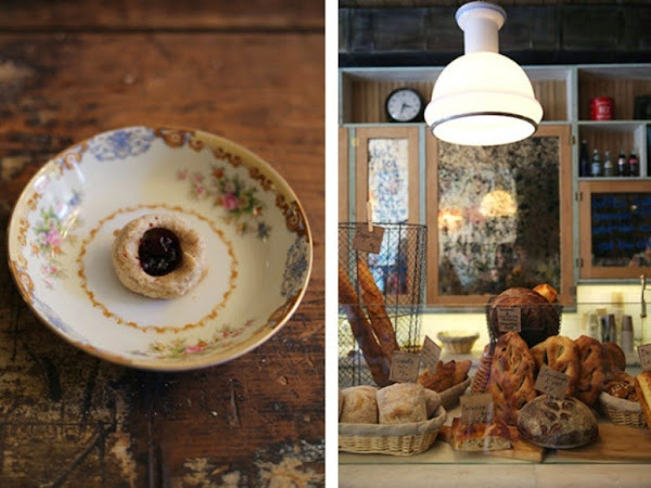 Ya te hemos contado unas cuantas veces lo que nos gustaría montar una bakery, seguro, pero si además encontramos tesoros como este, la imaginación se va muy lejos y los sueños crecen más si cabe... Lo primero que nos sedujo fue el precioso papel de la pared, dulce y femenino, que contrasta de forma maravillosa con la decoración industrial, masculina y contundente, creando un equilibrio perfecto que acaban de redondear con cada uno de los detalles: antiguas ilustraciones en la pared, sillas diferentes y de colores en la mesa central, sifones por aquí, pizarras por allá... Cada rincón es un deleite para los sentidos...
