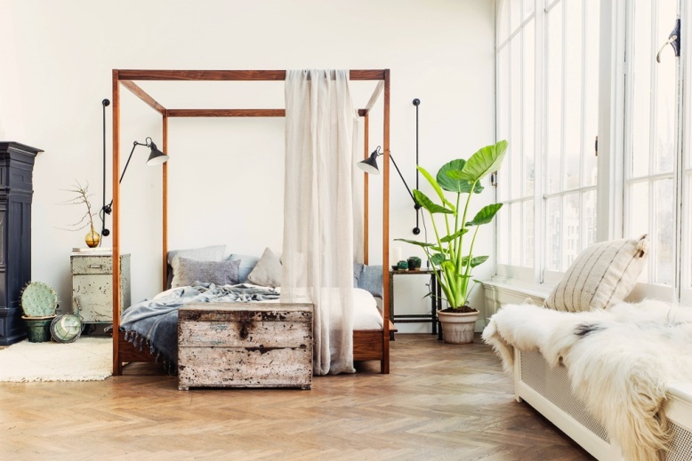 Empezando con el suelo, en espiga y de madera de roble envejecida, no pueden faltar grandes piezas de mobiliario industrial vintage, cuero, madera y hierro, sobre un fondo blanco impoluto para resaltar las pátinas envejecidas, los materiales oscuros y sorprendernos con un toque fresco y sereno en la habitación. Te dejamos una pequeña selección de los básicos para que consigas este look en tu casa: