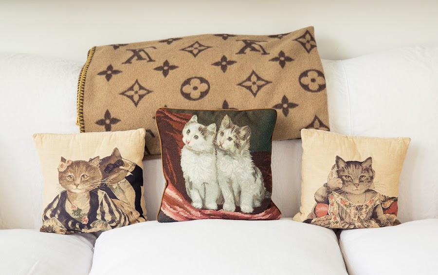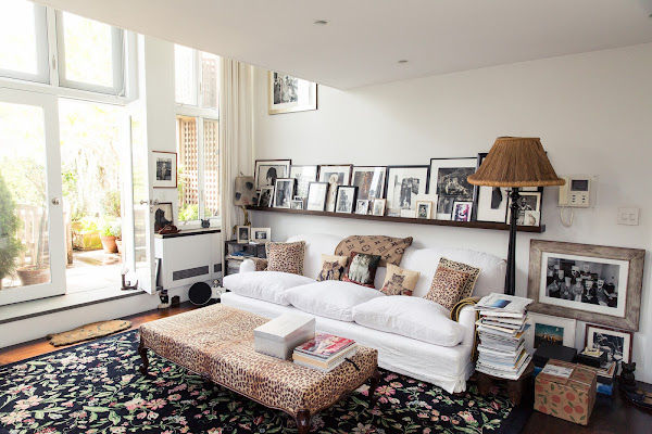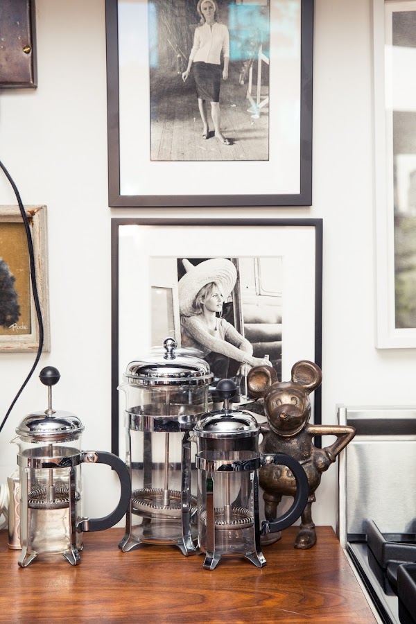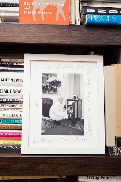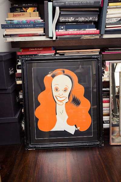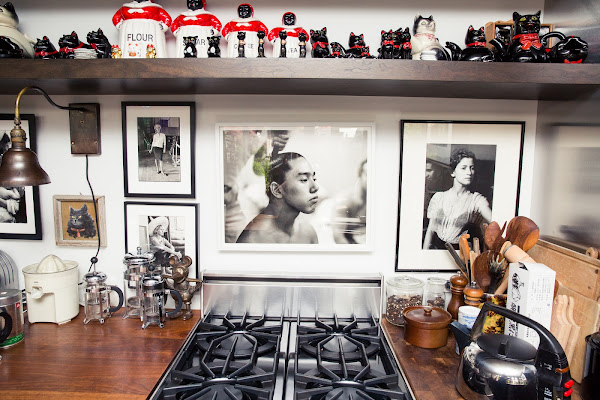 Me encanta ver cómo la personalidad y el tono tan famoso del pelo de Grace, marcan el estilo y los colores de la deco de su casa: colores cálidos y anaranjados, gatos en cada rincón, fotografías con famosos, imágenes que bien podrían formar parte de un libro de historia sobre moda... y un poco con un toque de señora mayor, una de esas señoras, con las que sería estupendo compartir una taza de té o un café, para que te diese una clase magistral sobre la vida.