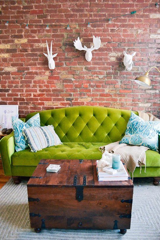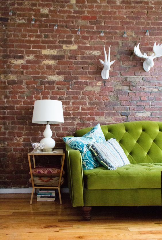 Si somos más explosivos, un sofá en verde terciopelo me parece lo más.