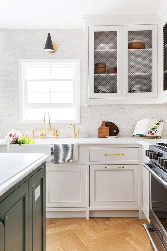 Fuente: Emily Henderson Como te decía al principio de este post, cambiar tus grifos de siempre por unos espectaculares grifos dorados será una forma genial de remodelar de arriba abajo tu cocina. Pero hay otros elementos que puedes sustituir para que el cambio sea total.