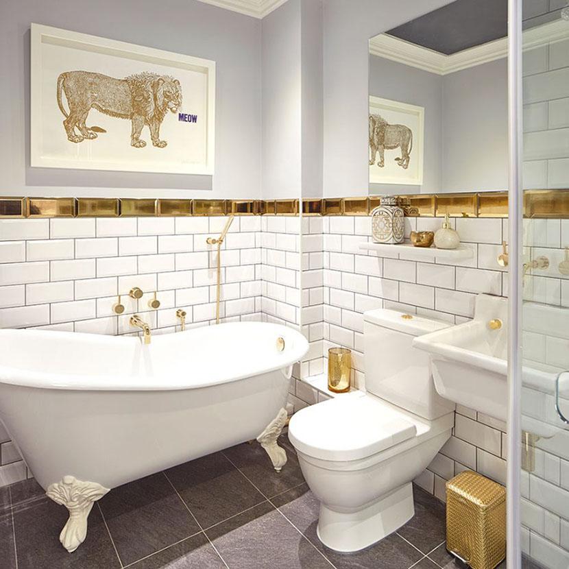 Nueva tendencia a la vista. Porque los detalles son siempre Importantes y son los que acaban de definir un espacio y los que marcarán la diferencia entre un proyecto correcto y un proyecto perfecto. Ahora, los baños se visten de gala y el dorado entra con fuerza para cubrir griferías y complementos como apliques, baldas, tiradores o marcos de espejo. Vía amberinteriordesign.com Vía tilemountain. ...