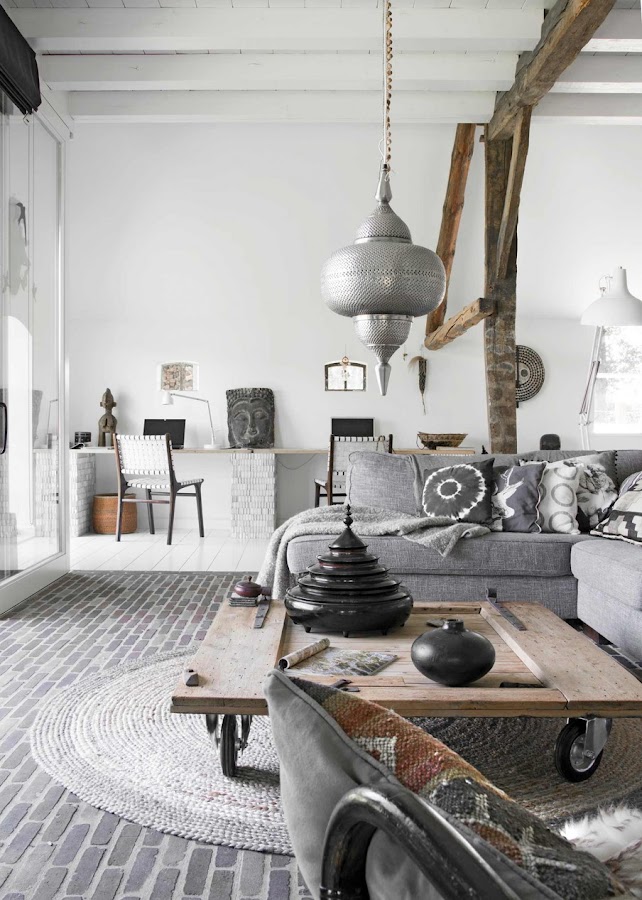 Si hace unos años me hubieran dicho que la combinación de gris con colores tierra como el marrón , queda genial para decorar una estancia con cierto estilo étnico, no lo hubiera creído. Como dicen "Ver para creer", pero tengo que reconocer que queda genial, y más si se tienen metros de sobra como la casa que os traigo hoy.