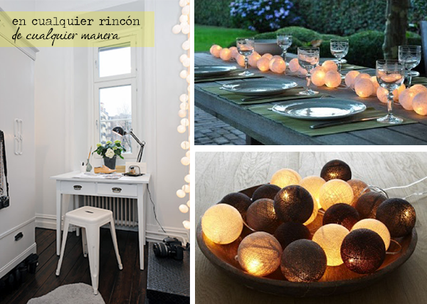 Hoy os traigo algunos DIY para hacerlas nosotros mismos. Siempre con la base de una guirnalda de luces, la típica que solemos usar para decorar el árbol de Navidad.