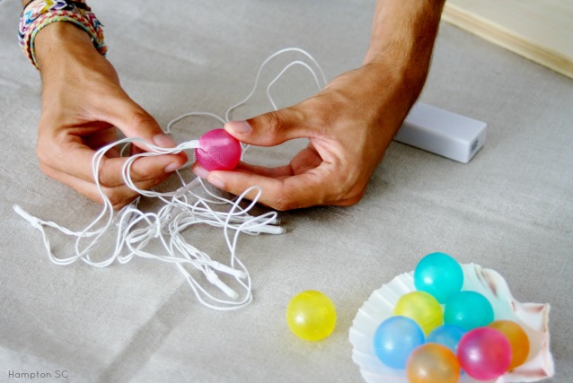 Se trata de una guirnalda de luces hecha con bolas de colores