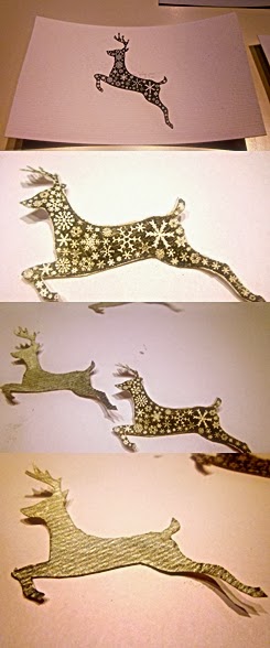 3. Una vez recortados pinta, si quieres, los renos (en este caso, he repasado algunos con rotulador color plata).