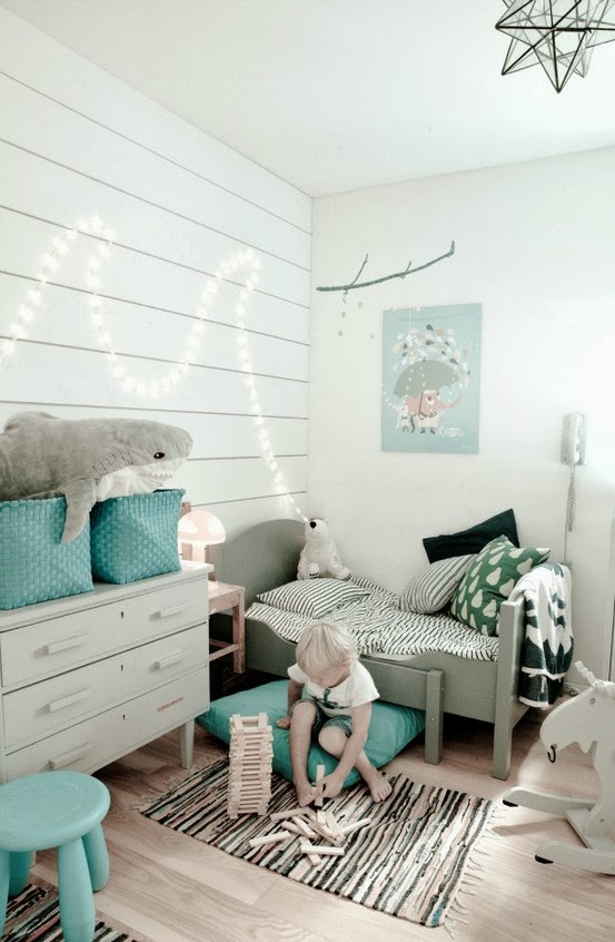 En las habitaciones de los mas pequeños es que no puede faltar una guirnalda. Esa luz que se queda cuando apagas la principal a mi personalmente me chifla.